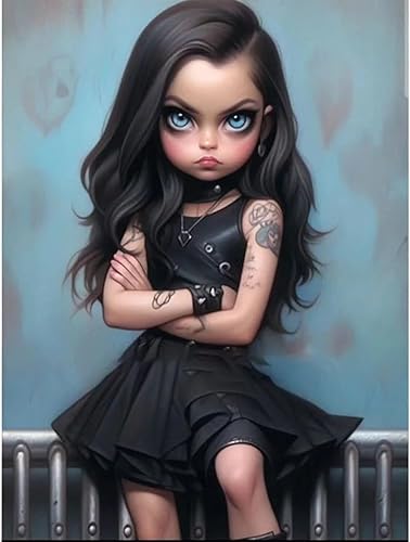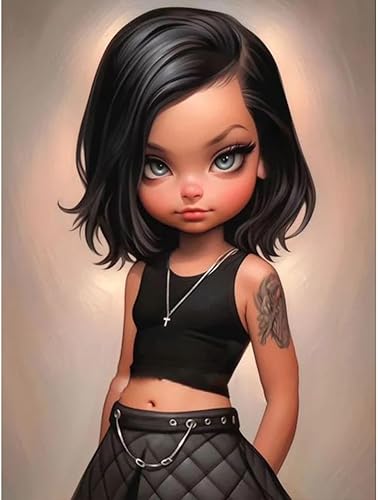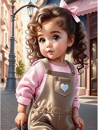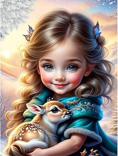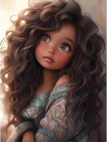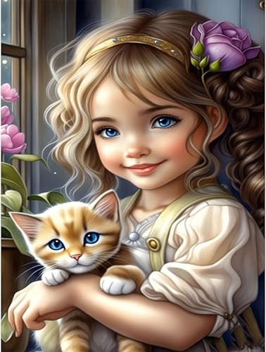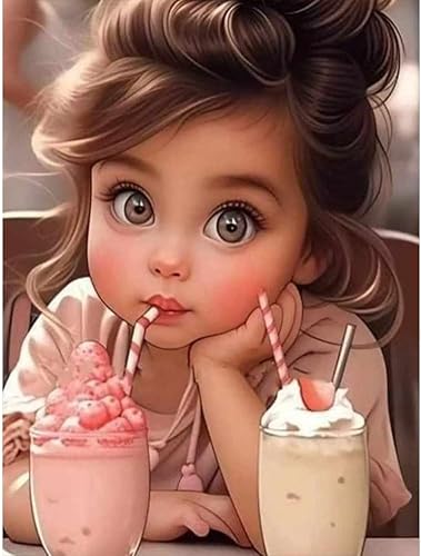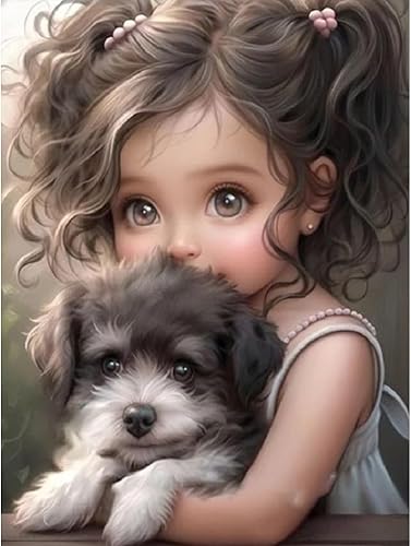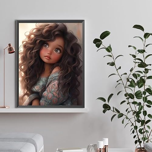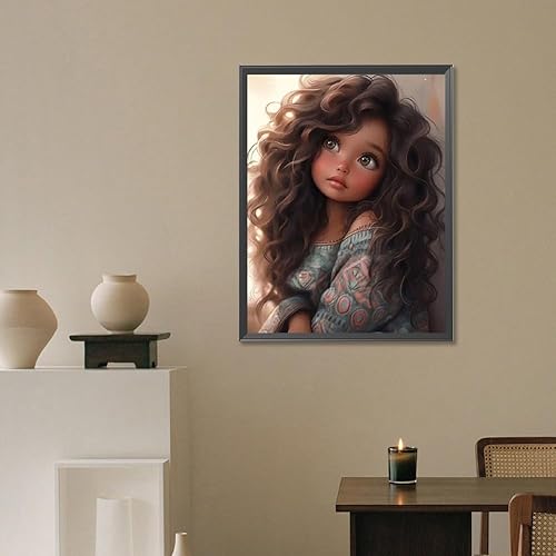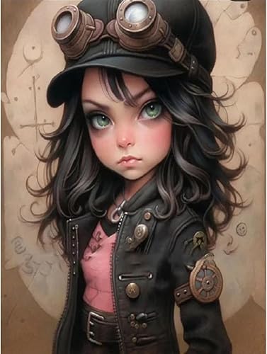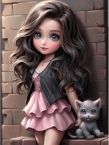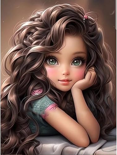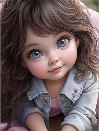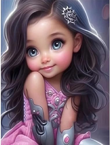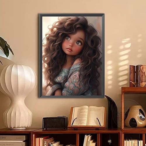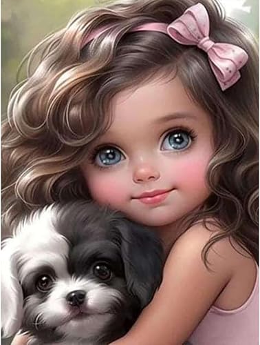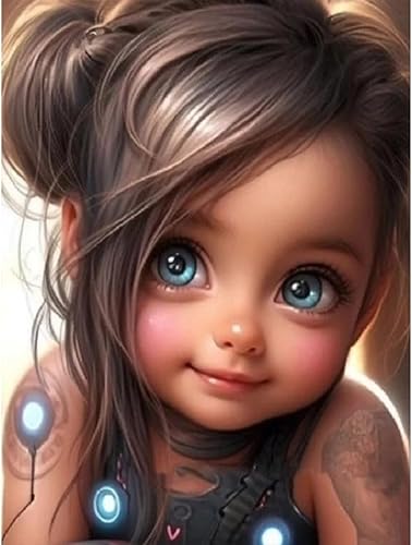 Starnearby Broderie Diamant Fille de Dessin Animé Bricolage Diamond Painting Cartoon Fille aux Grands Yeux Diamant Rond Mosaïque Point de Croix Diamant Peinture Diamant 5D Complet 30x40cm