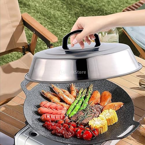 predolo Couvercles pour Badigeonner en Acier Inoxydable avec Poignée, Cloche Plancha, Couvercles de Casseroles, Cloche de Cuisson pour Plancha, pour Barbecue, Cuisine, Intérieur Et Extérieur, 42cm