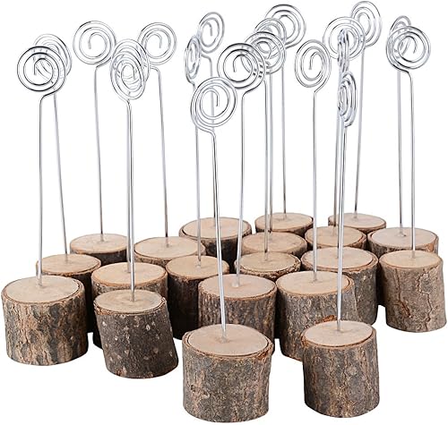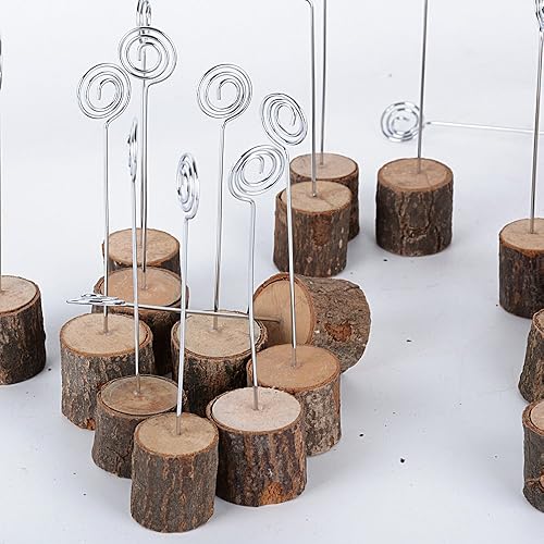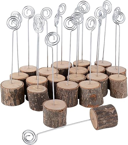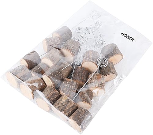 AONER (H:14cm 20Pcs Porte Nom en Bois avec Porte Photo Marque Place Support Photo Carte Nom Place Déco Table Rustique pour Mariage Anniversaire Fête Champetre(Base:3cm)