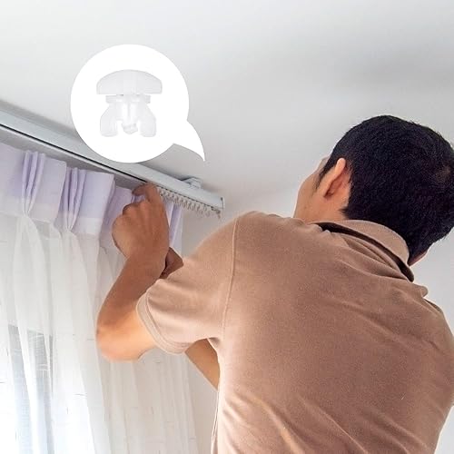 Lot de 40 rideaux avec système de rail, stoppeurs de rideaux, accessoires de rideau, accessoires de rideau, serrures de rechange (blanc)