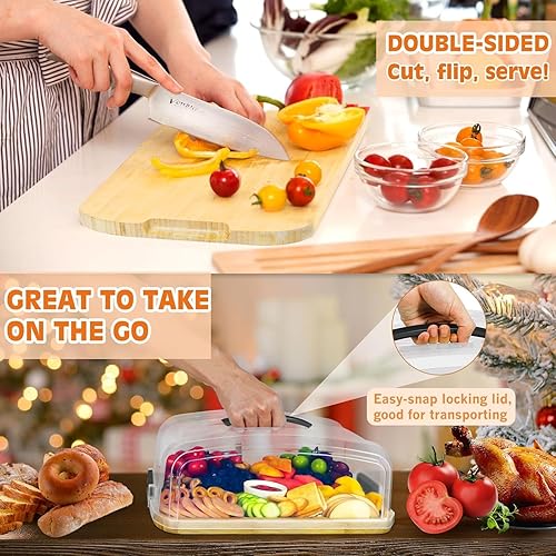 Plateau Fromage en Bambou avec Couteaux Ensemble Service Planches Charcuterie Plateaux Nourriture Fête Cadeau pour Pendaison crémaillère, Noël, Anniversaires, Mariage