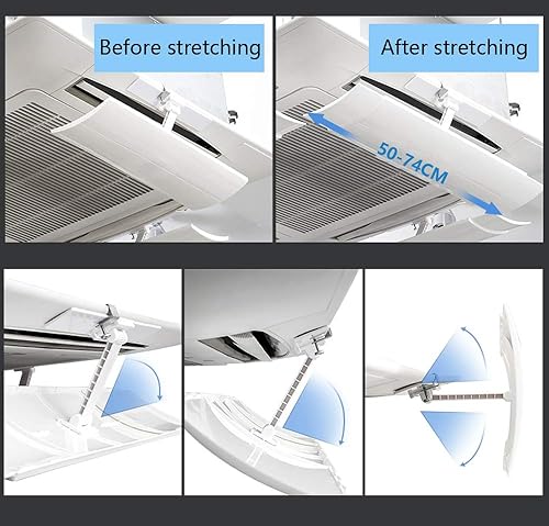 Déflecteur de climatiseur for climatisation centrale au plafond (une tranche), conception télescopique 50-74 cm, empêche l'air de souffler droit, angle réglable, ABS + PP