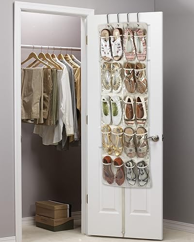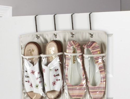Brilliant Feet G0061 - Organisateur de Chaussure à Suspendre pour 10 Paires - Toile Oxford Robuste - Beige (600D) avec Poches en PVC Transparent Renforcé - 135x53x7cm - Rangement des Chaussures