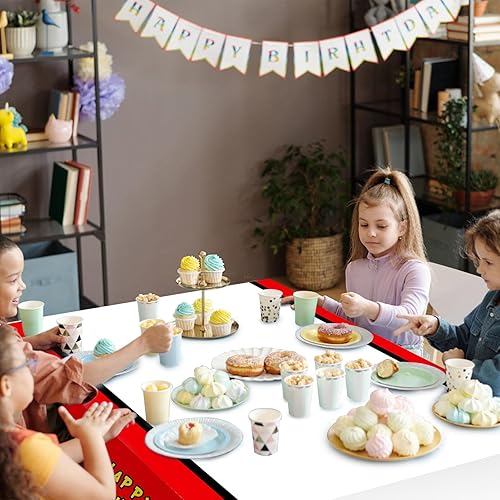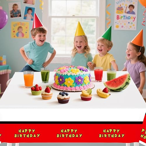SAVITA 3pcs Nappes Joyeux Anniversaire Thème de Dessin Animé, 180x108cm Rectangulaires Nappe Jeux Vidéo Plastique Rouge Blanc Décorations Table Fête d'anniversaire Fournitures pour Événements Enfants
