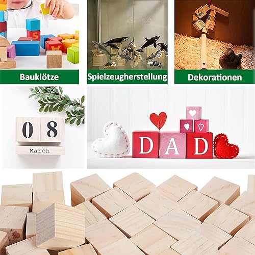 Cube en Bois, 30 Cubes en Bois de 3cm, Cubes en Bois Vierges, Petits Cubes en Bois Brut, Matériel de Bricolage en Bois pour la Décoration Bricolage Peinture Bricolage Décorations