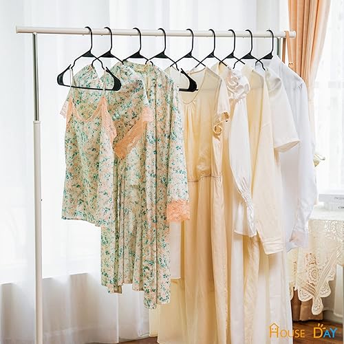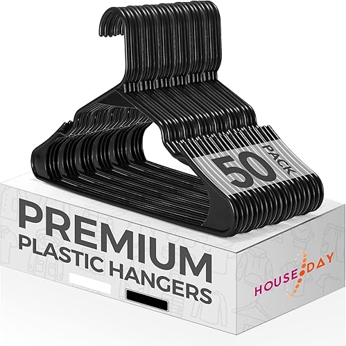 HOUSE DAY Lot de 50 Cintres en Plastique, Cintre Pantalon, Gain de Place avec Encoches, Cintre Antidérapant et Durables pour Jupe Vêtements, Longueur 42 cm, Noir