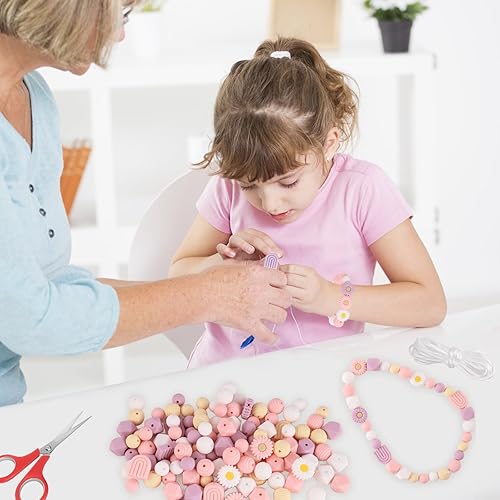 OCCOUMR Lot de 112 perles en silicone en forme de fleur - Perles rondes en vrac - Avec corde en nylon - Pour bricolage, bijoux, porte-clés, bracelets