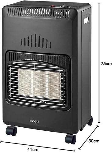 SOGO - CAL-SS-18290 - chauffage à gaz Butane en céramique, Pliable pour Stockage, 3 puissances, Bouteilles de 13 kg, Triple système de sécurité, 5 Roues, 4200 W