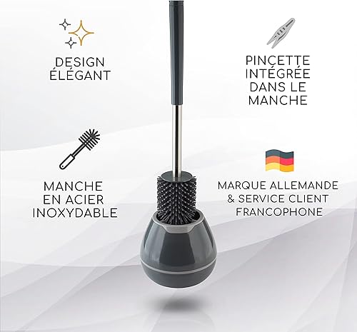 EXITOSO Brosse WC Silicone Support Sol - Brosse Toilette Silicone avec Pinceau - Balayette Balai WC Silicone Antibactérien Gris Noir - Brosse de Toilette Silicone Balai Toilette WC Silicone Souple