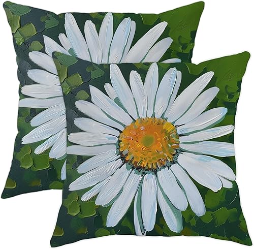 Lot de 2 housses de coussin carrées pour décoration extérieure, canapé, 40,6 x 40,6 cm, marguerites de tournesol et botanique, vert printanier