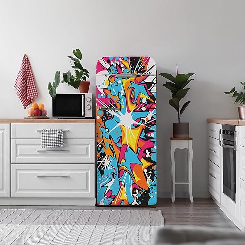 Alwayspon Graffiti Art Autocollant en vinyle pour réfrigérateur - 56 x 163 cm - Autocollant amovible pour réfrigérateur - Décoration de cuisine et d'intérieur