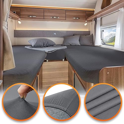 Drap Housse pour Camping-Car et Caravane 3 Pièces, Drap Housse de Luxe pour Camping-Car, Lit pour Camping-Car, Accessoires pour Camping-Car, Taille 70x190 cm - 85x210 cm (2X) + 35x130-50x145