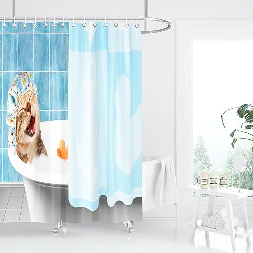 SHROUDEX Rideau de douche chat - 180 x 180 cm - Drôle de chat - Rideau de douche pour enfants - Motif chat - Multicolore - Adorable et hilarant - Textile (7, 180 x 180 cm)