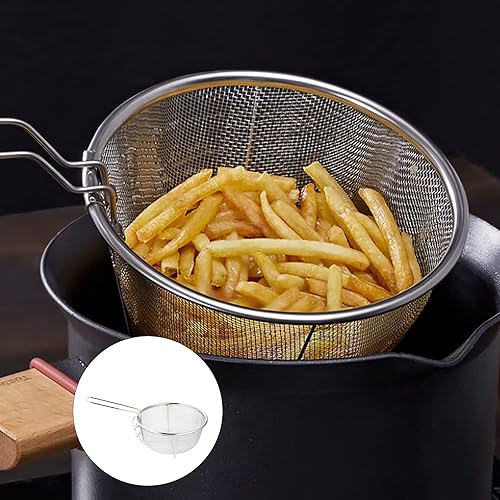 DOITOOL Panier à frire rond en acier inoxydable avec poignées pliables pour frire les pâtes, les spaghettis