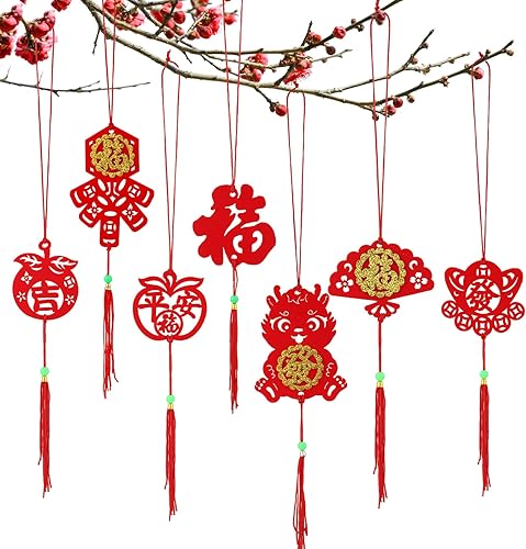 72 Décoration Nouvel an Chinois Suspendre, 25x6cm Décorations à Pendentif pour Fête du Printemps, Dragon de Fortune 2024 Personnage Fu Set d'Ornements à Pompons Chinois pour Maison Extérieur