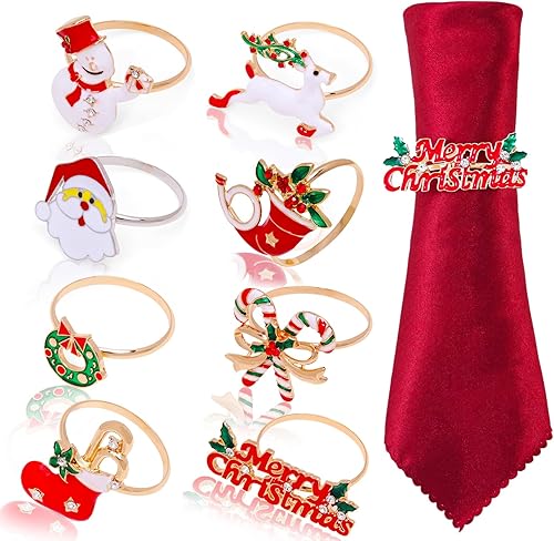 Lot de 8 ronds de serviette de Noël - Décoration de table de Noël - Ronds de serviette en tissu - Décoration de Noël - Pour Thanksgiving, fête, Noël, mariage