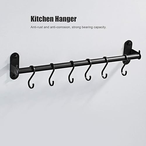 HERCHR Support à casseroles, rail de support suspendu pour casseroles et poêles de 40 cm/15,74 pouces avec 6 crochets, support de barre de pot mural, organisateur de support d'ustensiles de cuisine