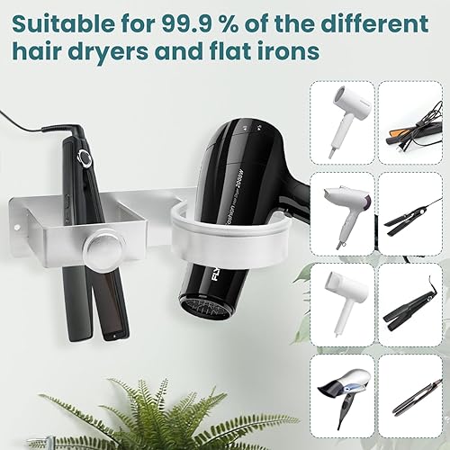 LUCKNIGHT Porte Seche Cheveux Mural, Auto-Adhésif Accroche Seche Cheveux, Porte Sèche Cheveux et Lisseur, sans Perçage, Support Sèche Cheveux pour Salle de Bains, Chambre à Coucher, Hôtel