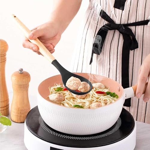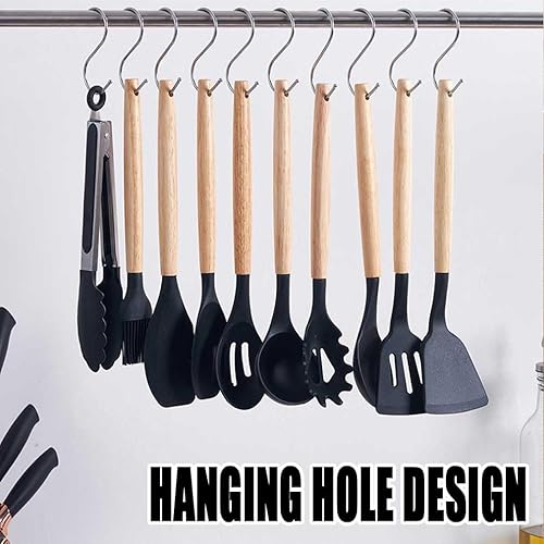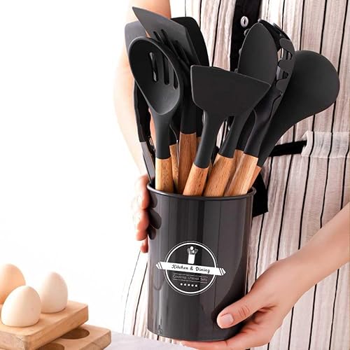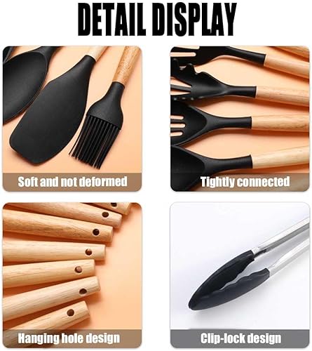 Ensemble d'ustensiles de cuisine, 12 ustensiles de cuisine en silicone, résistants à la chaleur, poignée en bois, non collants, passent au lave-vaisselle, nettoyage facile