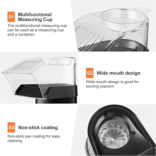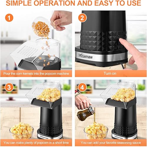Nictemaw Machine à popcorn Noir, 1200W Popcorn Maker Sans graisse ni huile, Snack sain pour la maison