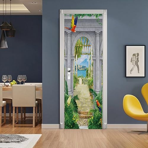 A.Monamour Sticker Porte Autocollant Poster De Porte 3D Bibliothèque Bibliothèque Pleine De Livres Vinyle Affiche De Porte Sticker Mural Papier Peint Art Décor 77x200cm