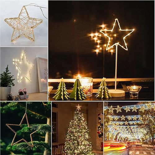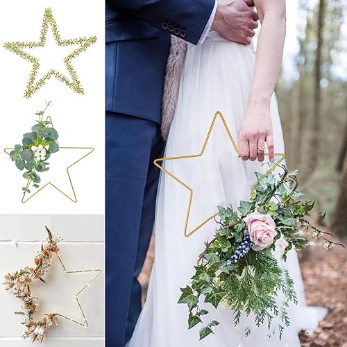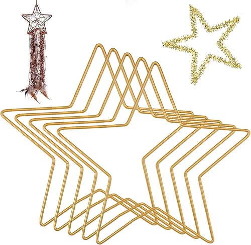 5 Pièces Couronne D'Étoile Cadre en Macramé, 20cm Pentagramme Anneau en Fil Métallique, Anneaux en Métal pour Travaux Manuels, Anneaux en Métal Attrape-Rêves, pour Loisirs Créatifs, Noël, Nouvel An