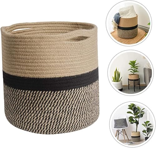 Cabilock Panier De Rangement Décoratif En Corde De Coton 1 Pièce Jaune Et Noir Diamètre De 30 Cm Pour Lorganisation De La Maison