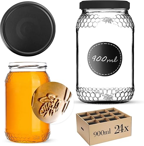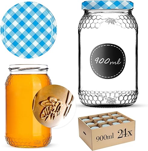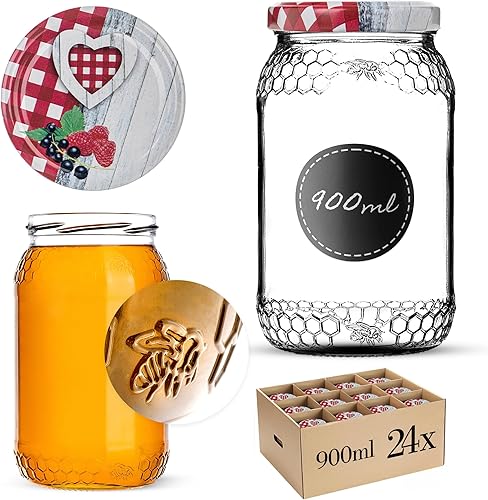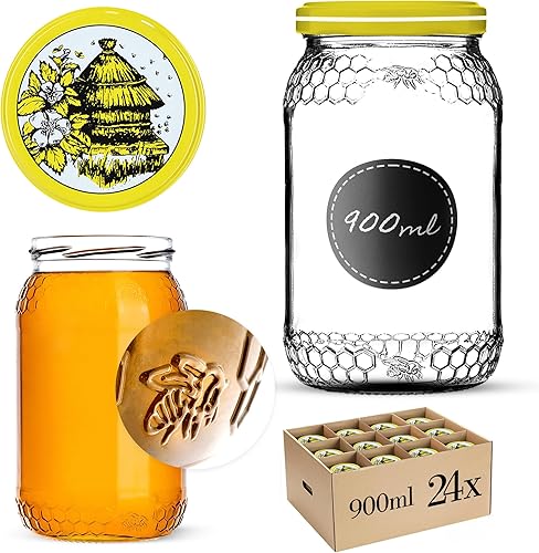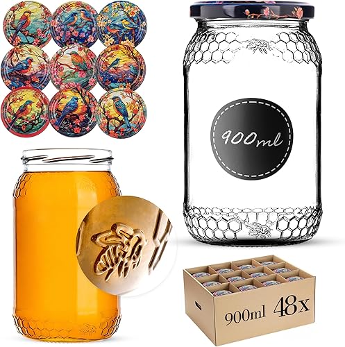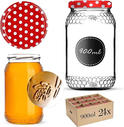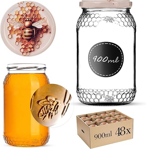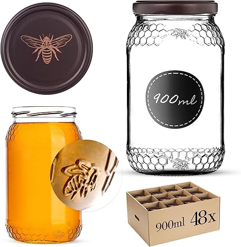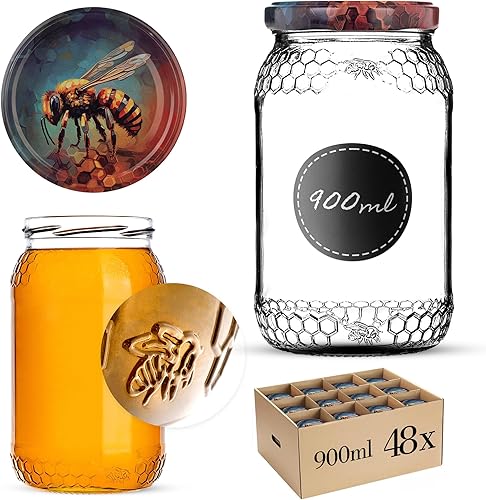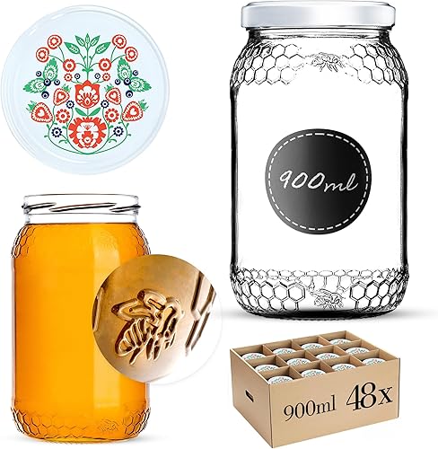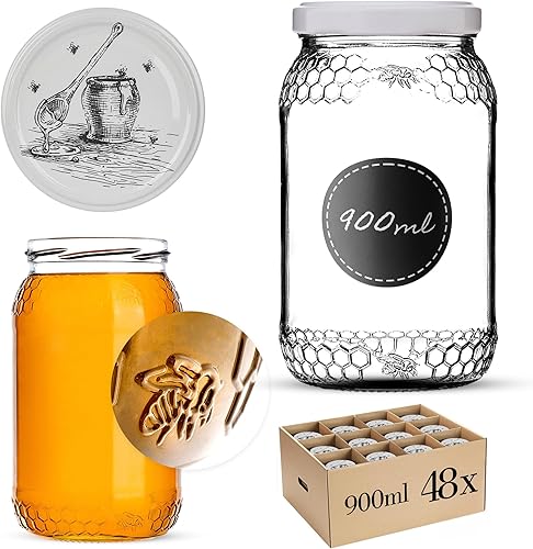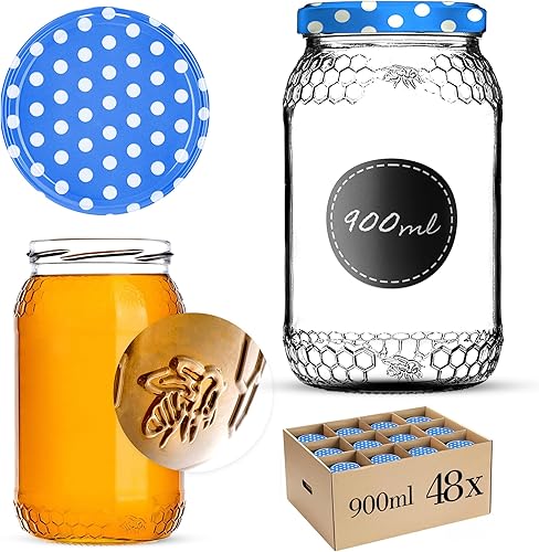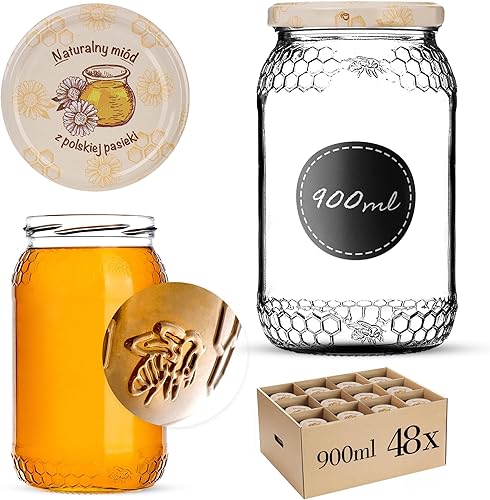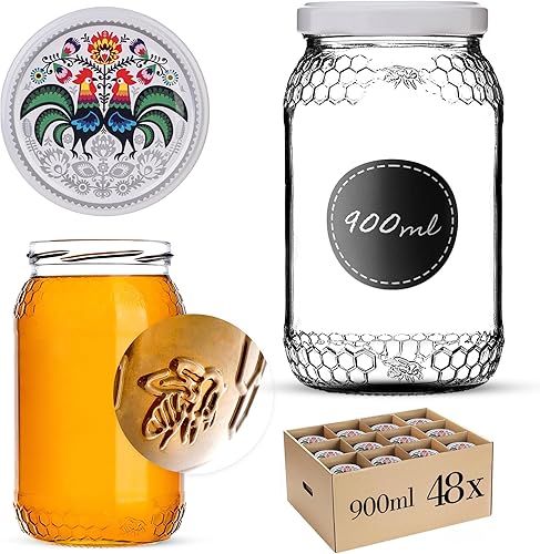 KADAX Lot de 48 bocaux à miel, 900 ml, avec couvercle à visser fi82 mm, pour miel, confiture, miel