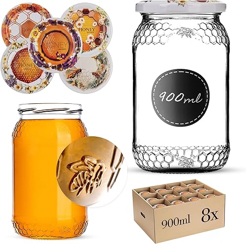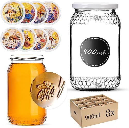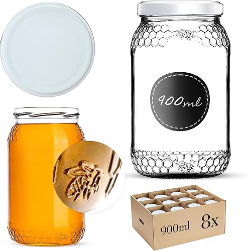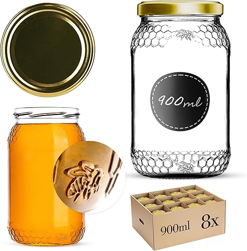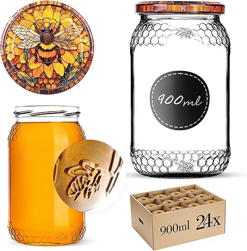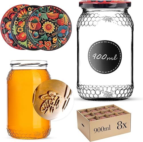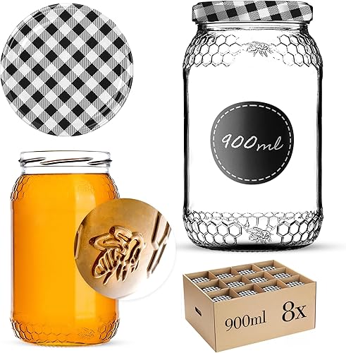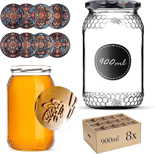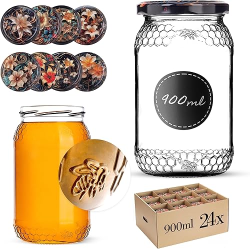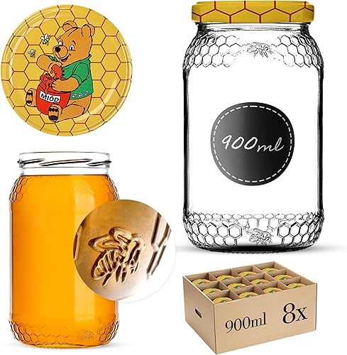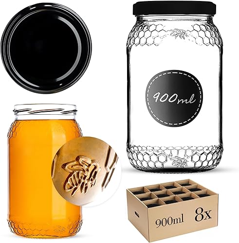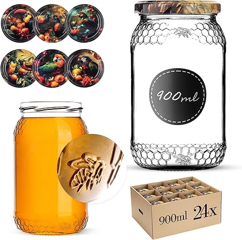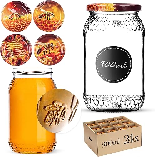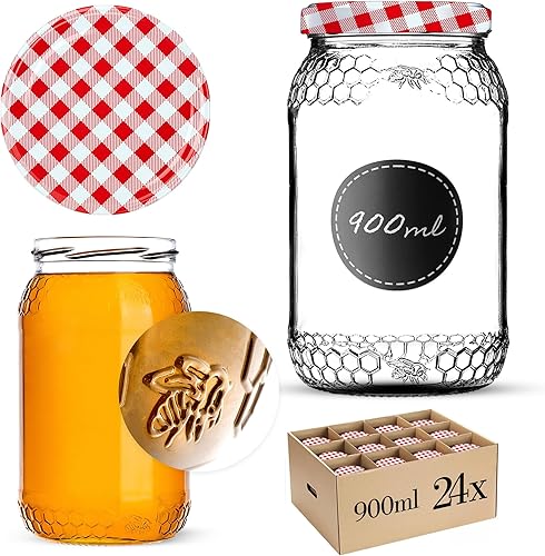 KADAX Lot de 48 bocaux à miel, 900 ml, avec couvercle à visser fi82 mm, pour miel, confiture, miel