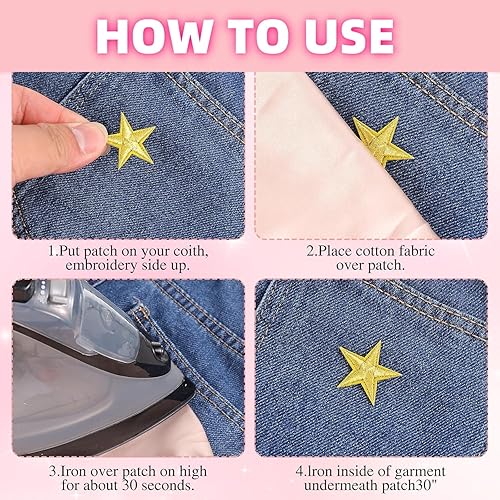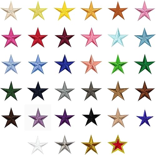 Fenglin-joy Patchs étoile à repasser, 30 pièces de patchs à repasser étoile patchs étoiles brodés Pour t-shirts, jeans, jupes, chapeaux, vêtements
