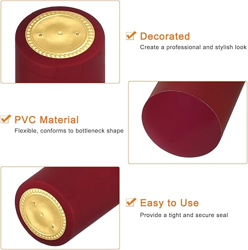 sourcing map Lot de 100 capsules thermorétractables en PVC pour caves à vin et cuisine - Doré - 32 x 60 mm