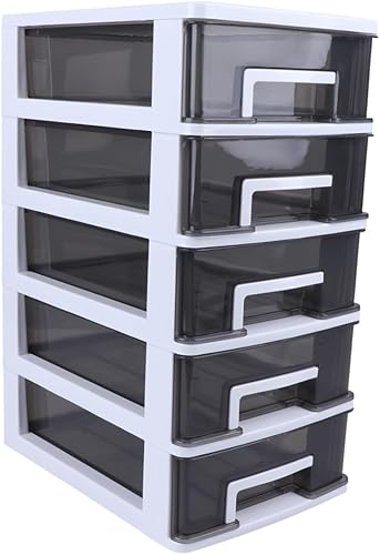 Cabilock Armoire De Rangement À Plastique À Cinq Couches Organiseur Portable pour Bureau Et Maison Boîte De Rangement Transparente Noir