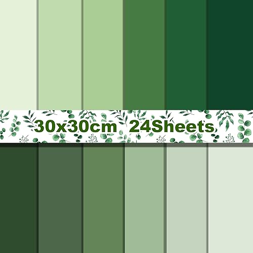 Lot de 24 feuilles de papier de scrapbooking à motif vert, 12 designs de papier décoratif double face dégradé vert pour scrapbooking, travaux manuels, 30,5 x 30,5 cm, pour le scrapbooking