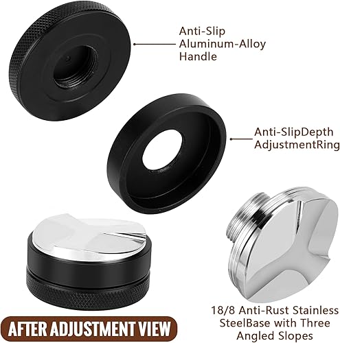 Collazoey Distributeur de Café 58 mm, Outil de nivellement pour café Expresso en Acier Inoxydable, Profondeur réglable, Simples et Portables