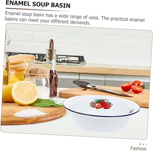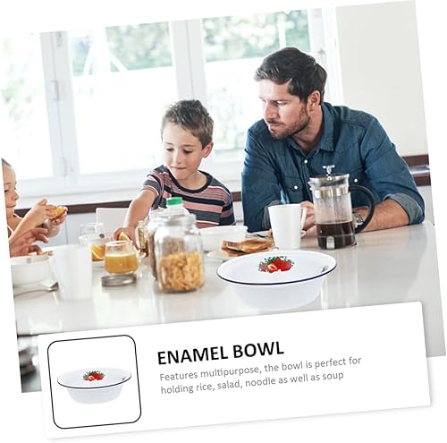 BRIGHTFUFU Bol À Soupe En Émail Épais Avec Poignée Style Rétro Sans Fond Pour Le Service