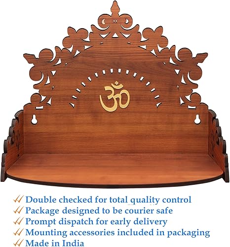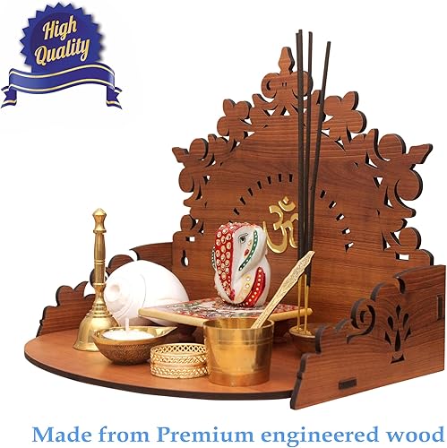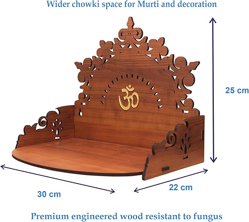 Heartily Beau mandir Pooja en bois floral pour maison, temple et bureau – Support moderne pour Puja (hauteur : 24 cm, longueur : 30 cm, largeur : 22 cm)