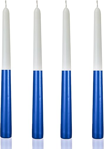 Scentoria Lot de 4 bougies bleues métallisées - Bougies coniques bleues - Hauteur : 25 cm - Diamètre : 1,8 cm - Bougies colorées - Bougies goutte à goutte pour bouteille de rituels, banquet, mariage