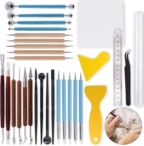 Keadic Lot de 30 outils de modelage en pâte polymère pour décoration de gâteau, fondant, nail art, poterie, artisanat et autres loisirs créatifs