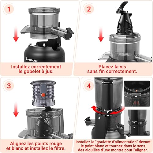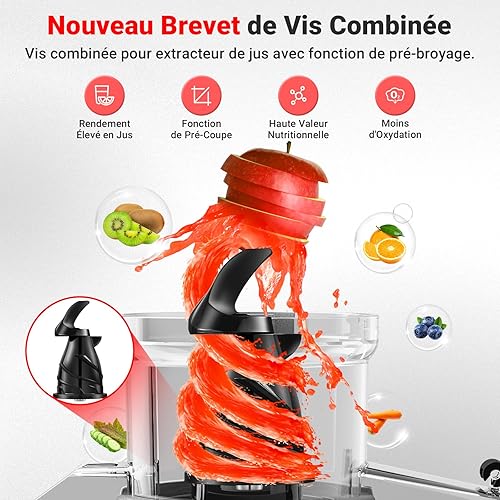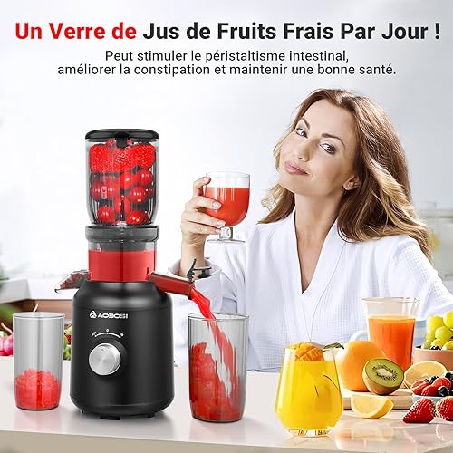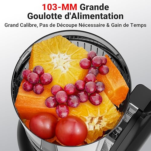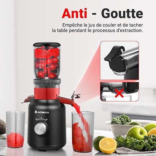 Extracteur de jus de fruits et légumes-AOBOSI 250W extracteur de jus-1.2L Centrifugeuse extracteur de jus avec un alésage de 103MM et une vis sans fin à 8 étapes-2 filtres et 2 brevets Juicer, Noir.