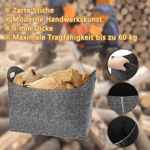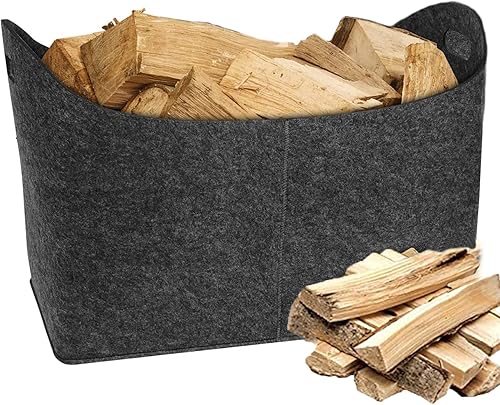 Panier De Rangement En Feutre, Panier à BûChes De Bois En Feutre Panier Bois Pour CheminéE, Panier à Feutre Pliable Pour Transporter Du Bois De Chauffage, Des VêTements Et Des Magazines (Gris Foncé)