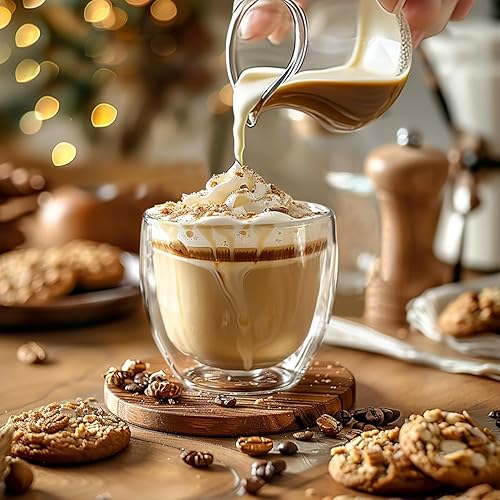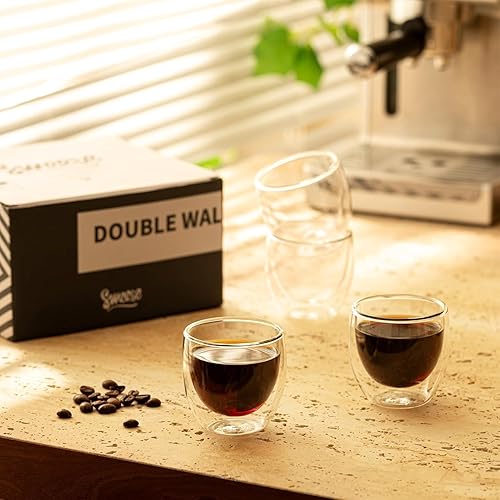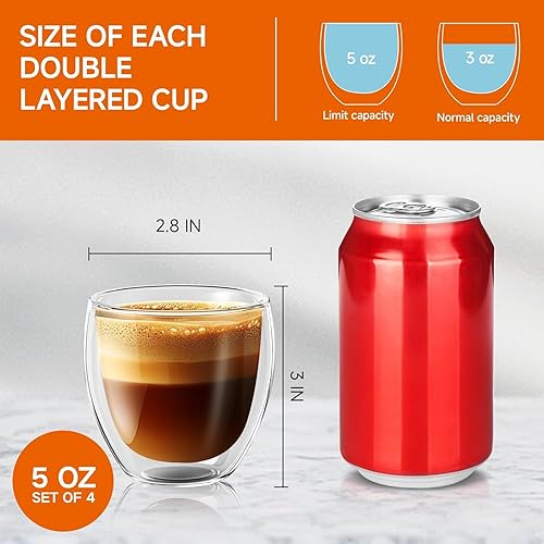 Lot de 4 tasses à café en verre borosilicate à double paroi, isothermes transparentes pour boissons chaudes et expresso, 150 ml (sans poignée)