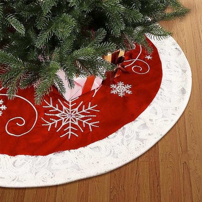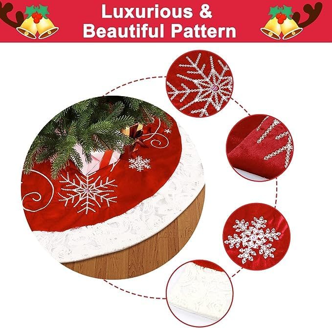 Jupe de Sapin de Noel 120 cm Ronde Tapis Sapin Noel Neige Couvre Pied Sapin Noel Jupe d'arbre de Noel pour Arbres de Noël Décorations de Fêtes de Noel