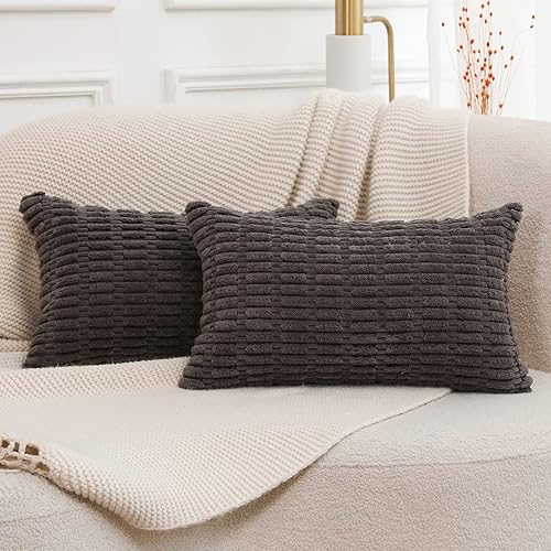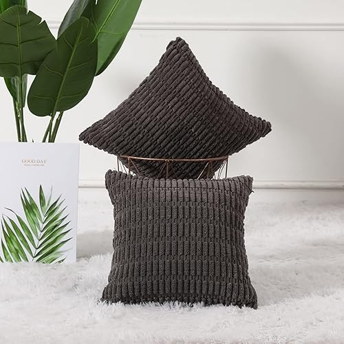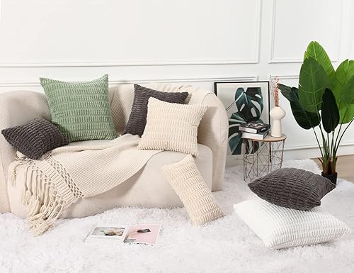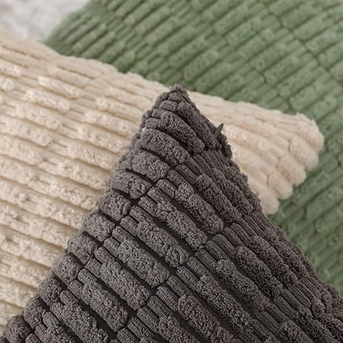 Mandioo Lot de 2 Housses de Coussin décoratifs bohème en Vert Sauge 45x45 cm Taie d'oreiller en Côtelé Rayé Super Douces pour la Décoration de la Maison Canapé lit et Salon