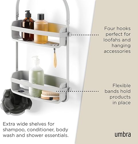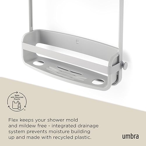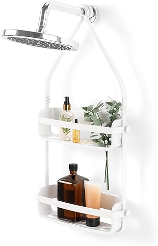UMBRA Flex Shower Caddy. Caddie de douche Flex. Organiseur de douche à 2 étagères, à suspendre, coloris blanc.