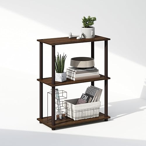 Furinno Turn-N-Tube Étagère d'affichage compacte multifonctionnelle à 3 Niveaux, étagère, bibliothèque, Noyer/Marron