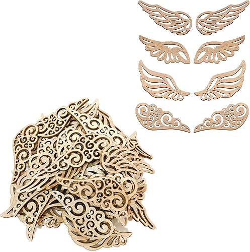 Lot de 80 rondelles en bois - Ailes d'ange - Décoration d'ailes d'ange - Pour travaux manuels, bricolage, décoration de fête