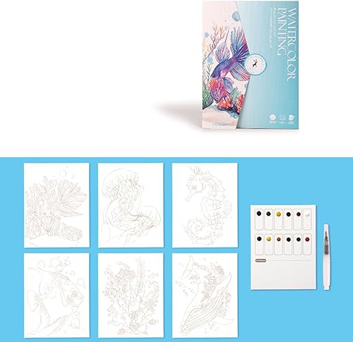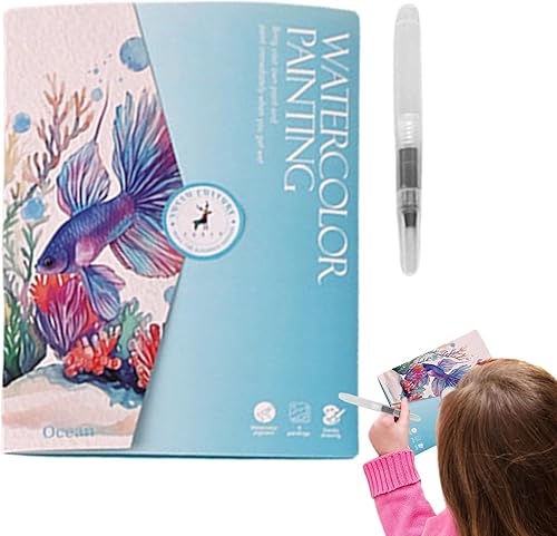 Cahier d'exercices d'aquarelle | Kit de peinture aquarelle | Cahier d'exercices d'aquarelle pour débutants | Comprend 12 couleurs de peinture et un pinceau pour la peinture artistique et le coloriage