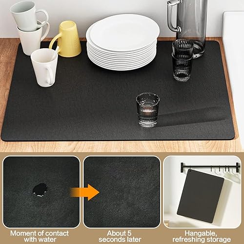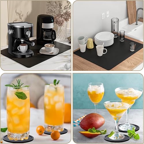Udbrud Tapis de Machine à Café, Tapis de Séchage Vaisselle Super Absorbant Tapis Antidérapant pour Bar à Café Antidérapant et étanche Tapis de Déversement avec 2 Dessous de Verrespecification