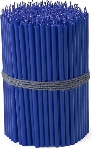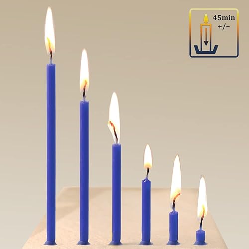 NKlaus - 250x bougies bleues sans suie sans gouttes fines L 16cm cire de paraffine premium 36112