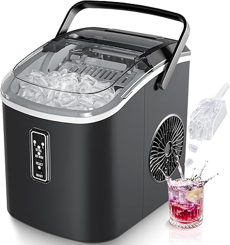 EUHOMY Machine à glaçons compacte - 9 glaçons prêts en 6 minutes - 12 kg/jour - Autonettoyante Avec poignée de transport, panier et pelle - 2 tailles de glaçons - Pour maison, cuisine, Bureau,noir